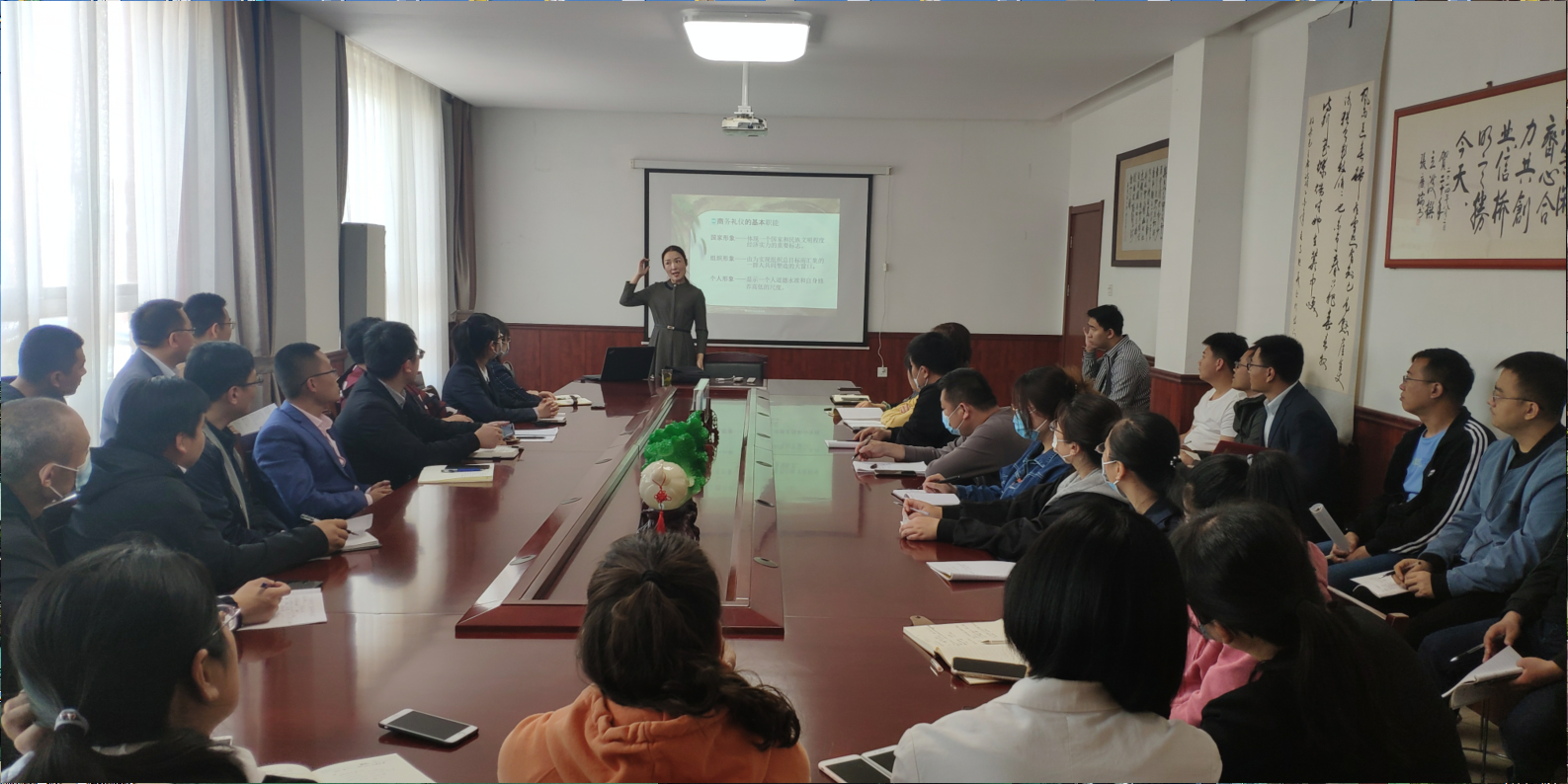 5月5號(hào),為提高公司整體形象,提高員工業(yè)務(wù)水平,公司請(qǐng)禮儀老師來公司培訓(xùn),經(jīng)過老師的講解,公司開始實(shí)施全體員工著裝得體的政策,周一至周五全部著西裝、皮鞋。