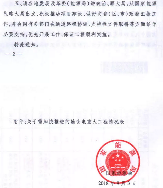 On September 7th, it was learned that the National Energy Administration issued the "Notice on Accelerating the Planning and Construction of a Batch of Key Projects for Power Transmission and Transformation". Guonengfa Electric Power [2018] No. 70, "Notice" pointed out that to supplement the infrastructure sector The strength of the board will play an important role in optimizing the investment structure, clean energy consumption, and precise power poverty alleviation, and accelerate the promotion of 9 items from Qinghai to Henan UHV DC, Baihetan to Jiangsu, Baihetan to Zhejiang UHV DC. The construction of key transmission and transformation projects will total 57 million kilowatts of transmission capacity (see the annex for the project).