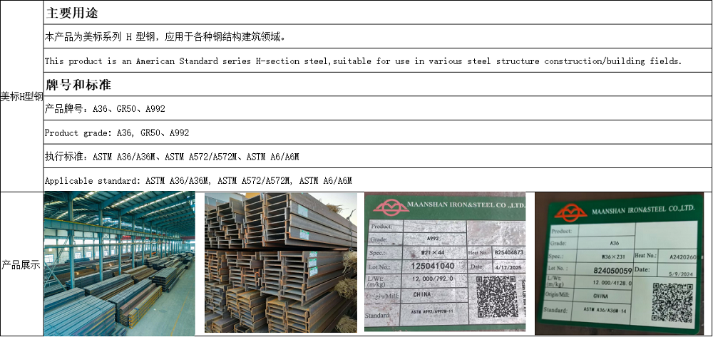 American standard H type steel
